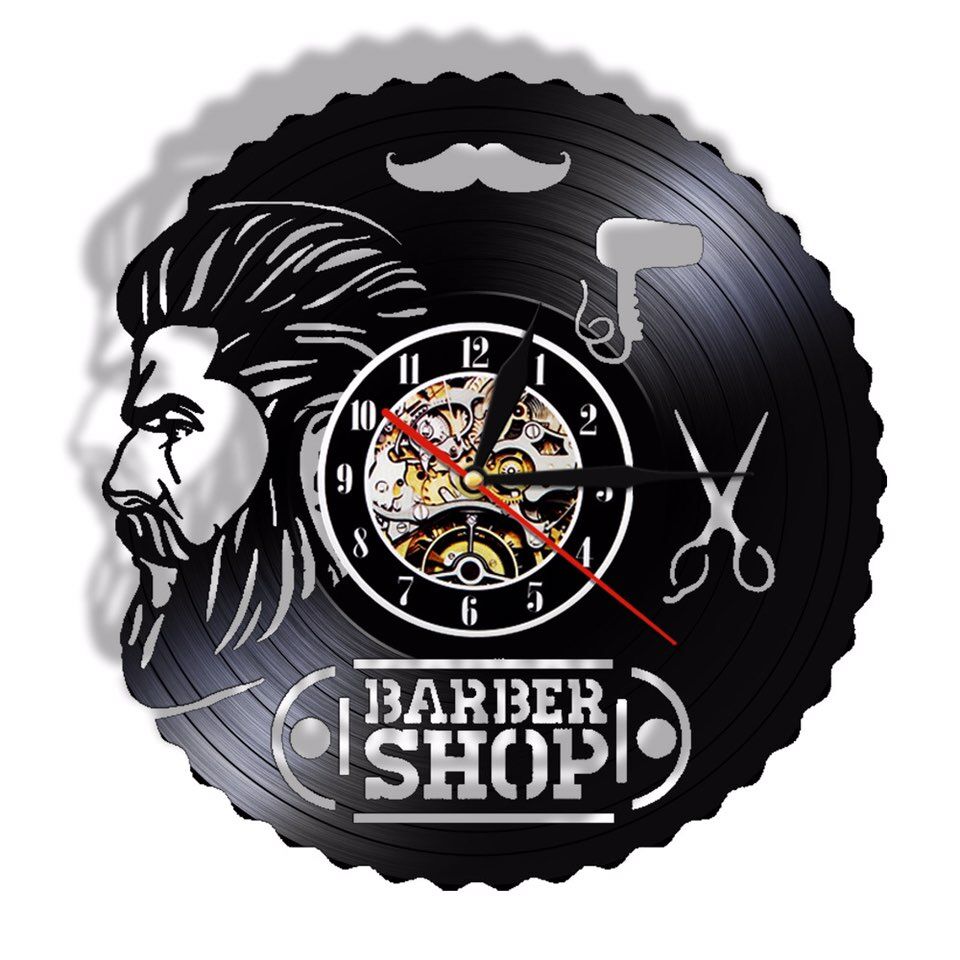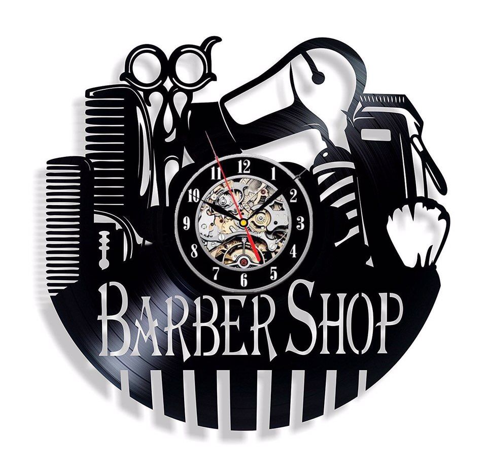 Kenmerken van onze Barbershop Wandklok Gemaakt Van Vinylplaat: