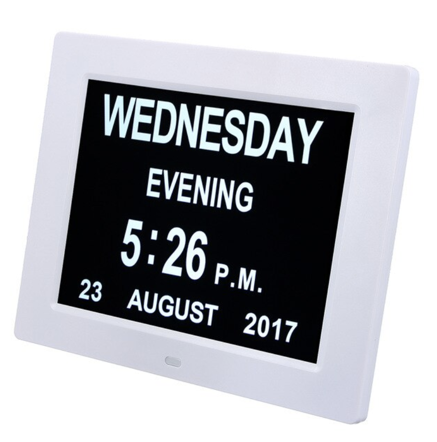 Herken je dat gevoel van even niet meer weten welke dag het is, of zelfs welke tijd van de dag? Onze digitale kalenderklok is speciaal ontworpen om dit probleem op te lossen, vooral voor senioren, mensen met geheugenproblemen, of gewoon iedereen die extra duidelijkheid op prijs stelt. Met zijn grote, heldere display zie je in één oogopslag de dag van de week (zoals "WEDNESDAY"), het dagdeel ("EVENING"), de exacte tijd ("5:26 P.M.") en de volledige datum ("23 AUGUSTUS 2017"). Geen verwarring meer, alleen pure duidelijkheid, de hele dag door. Deze klok brengt rust en structuur in elke kamer.