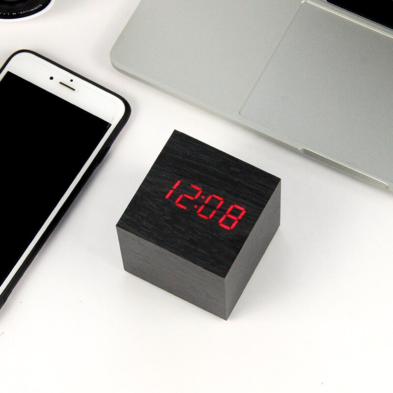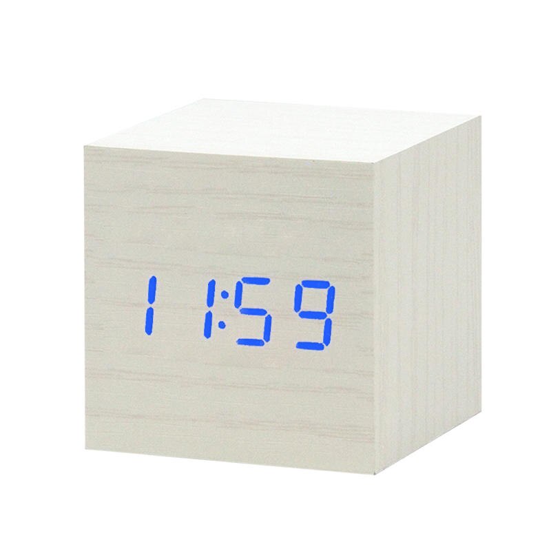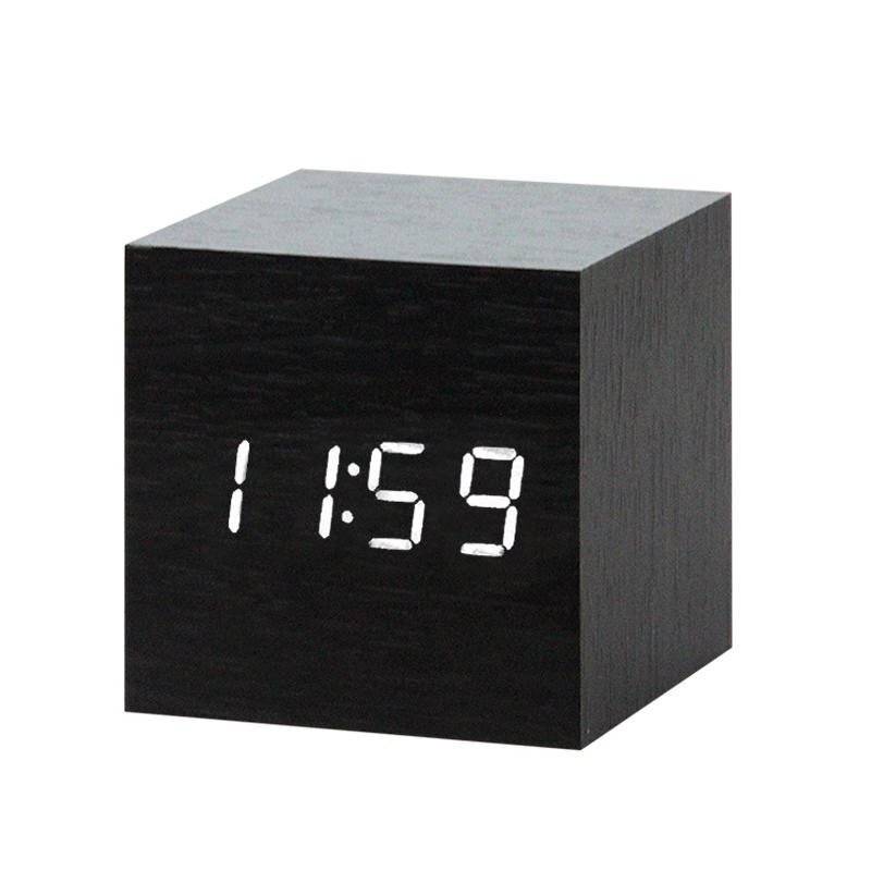 Digitale kubus wekker met houtlook