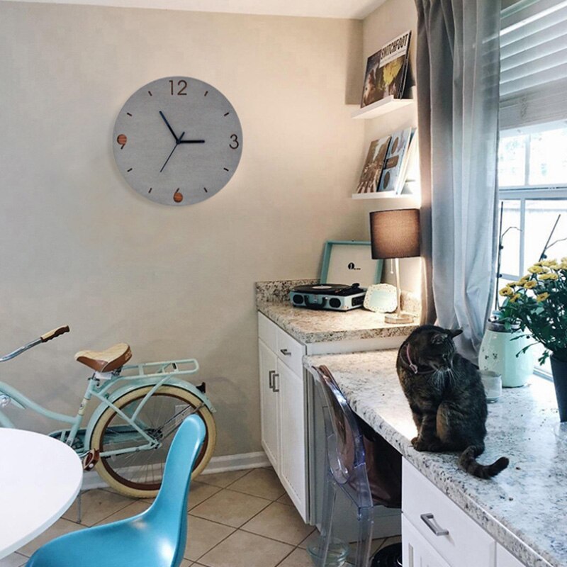 Kenmerken van de Grijze betonnen wandklok met hout:
