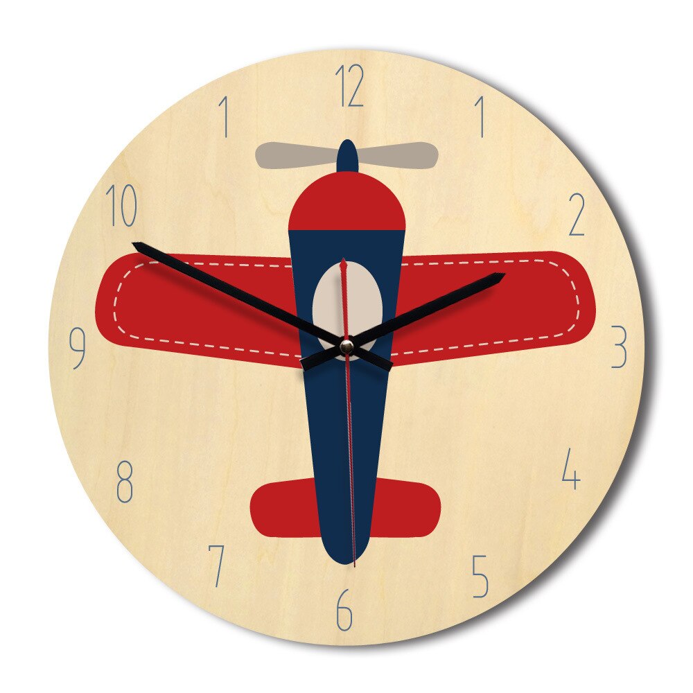 Houten kinderklok met vliegtuig illustratie: Perfect voor elke kinderkamer