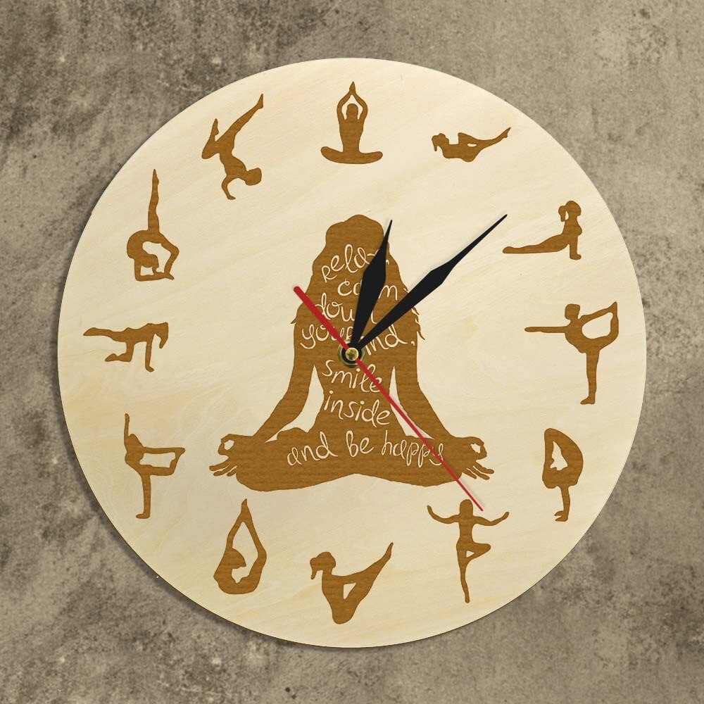Maak van elke seconde een moment van mindfulness met deze Houten wandklok met yoga posities.