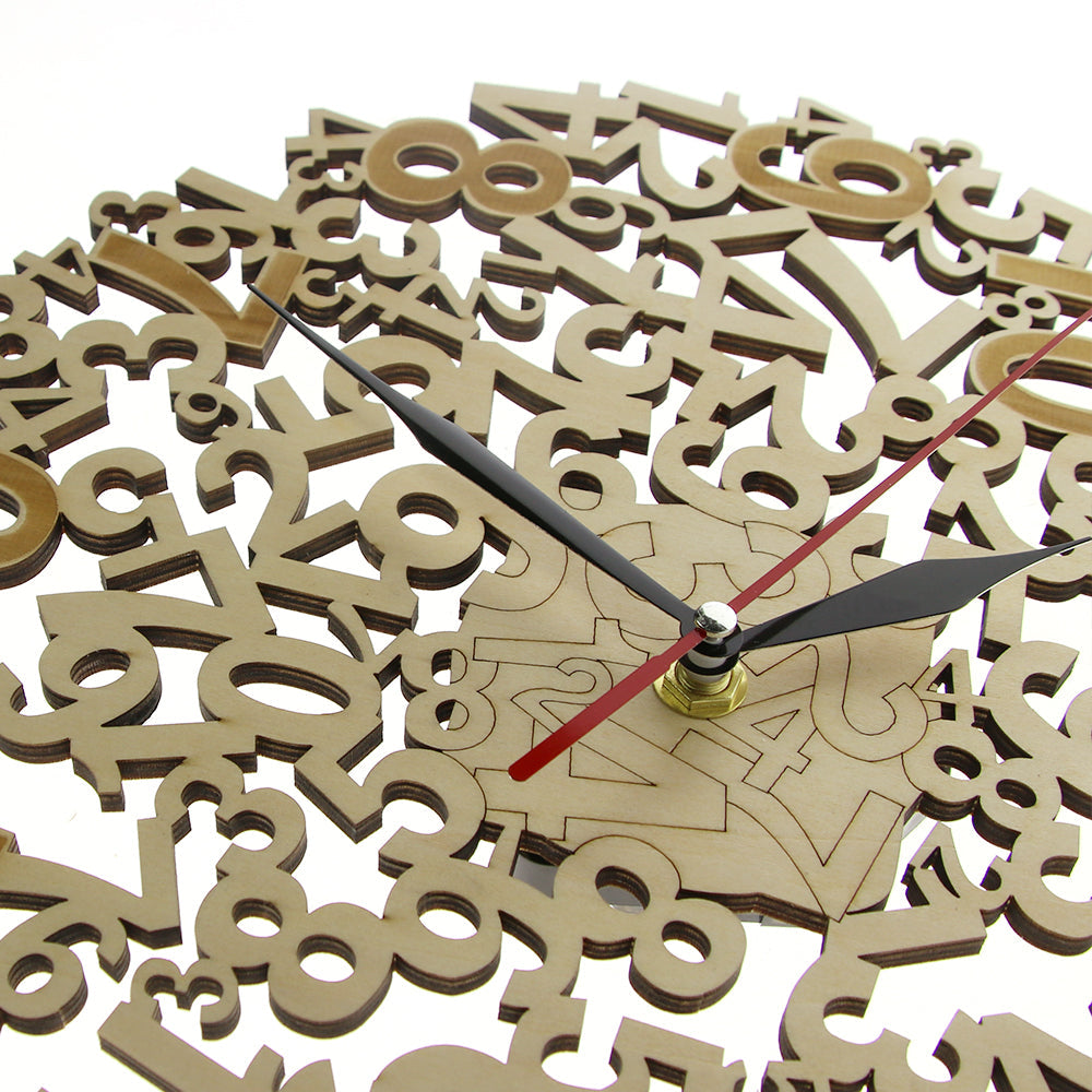 Deze wandklok is niet zomaar een klok, het is een statement piece. De "zwevende" cijfers zijn zorgvuldig uitgesneden uit hoogwaardig hout, wat zorgt voor een dynamisch en artistiek effect. De combinatie van de grote, duidelijke uurcijfers en de wirwar van kleinere cijfers eromheen creëert een fascinerend diepte-effect. Het is een perfecte mix van functionaliteit en esthetiek, ontworpen om uw interieur een unieke en persoonlijke touch te geven.