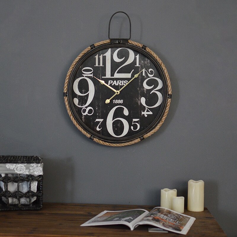 Ervaar elegantie en functionaliteit met onze Industriële wandklok met touw Parijs stijl. Ontworpen om je huis te verfraaien en de tijd in stijl bij te houden, combineert het verfijnd design met dagelijks gebruiksgemak.