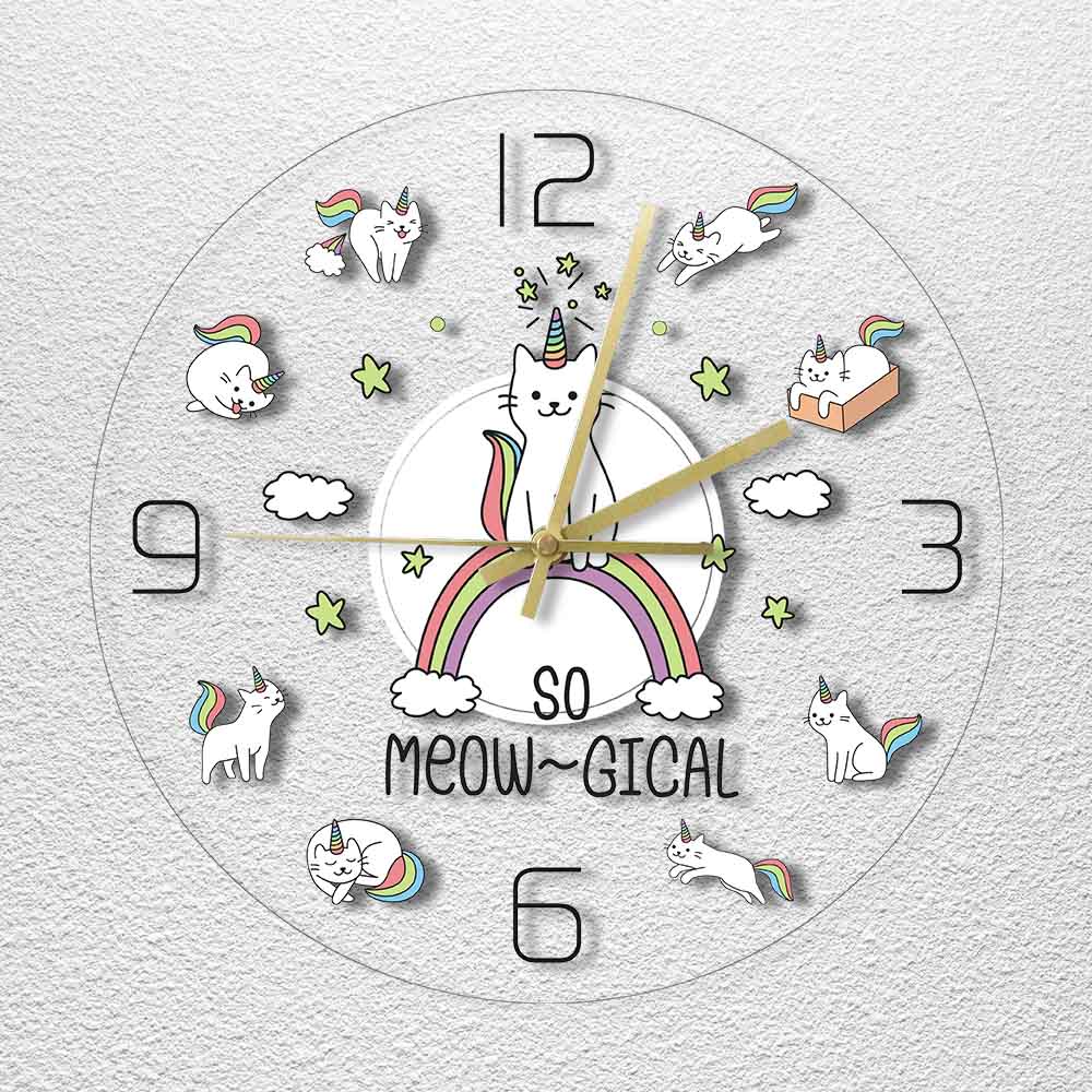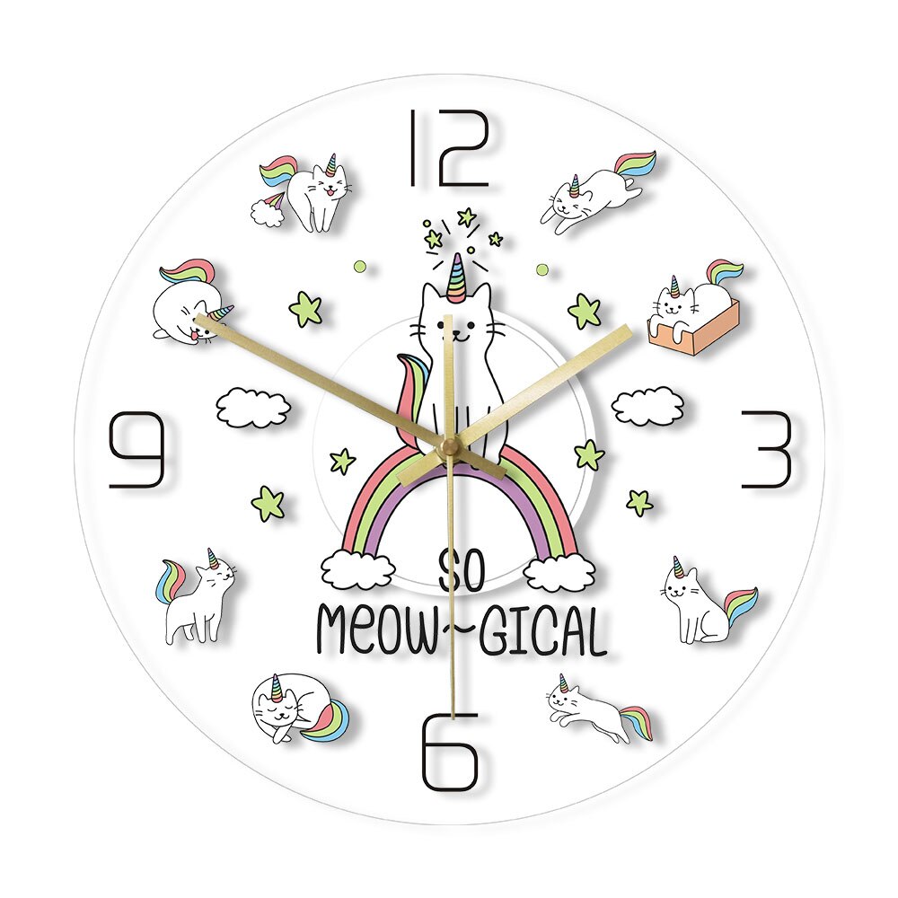 Ervaar elegantie en functionaliteit met onze Leuke kinderklok met eenhoorn katten. Ontworpen om je huis te verfraaien en de tijd in stijl bij te houden, combineert het verfijnd design met dagelijks gebruiksgemak.