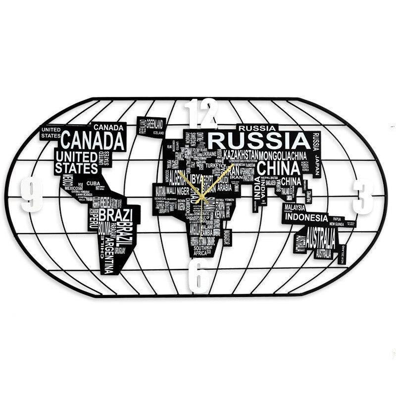 Ervaar elegantie en functionaliteit met onze Metalen wereldkaart wandklok met landnamen. Ontworpen om je huis te verfraaien en de tijd in stijl bij te houden, combineert het verfijnd design met dagelijks gebruiksgemak.