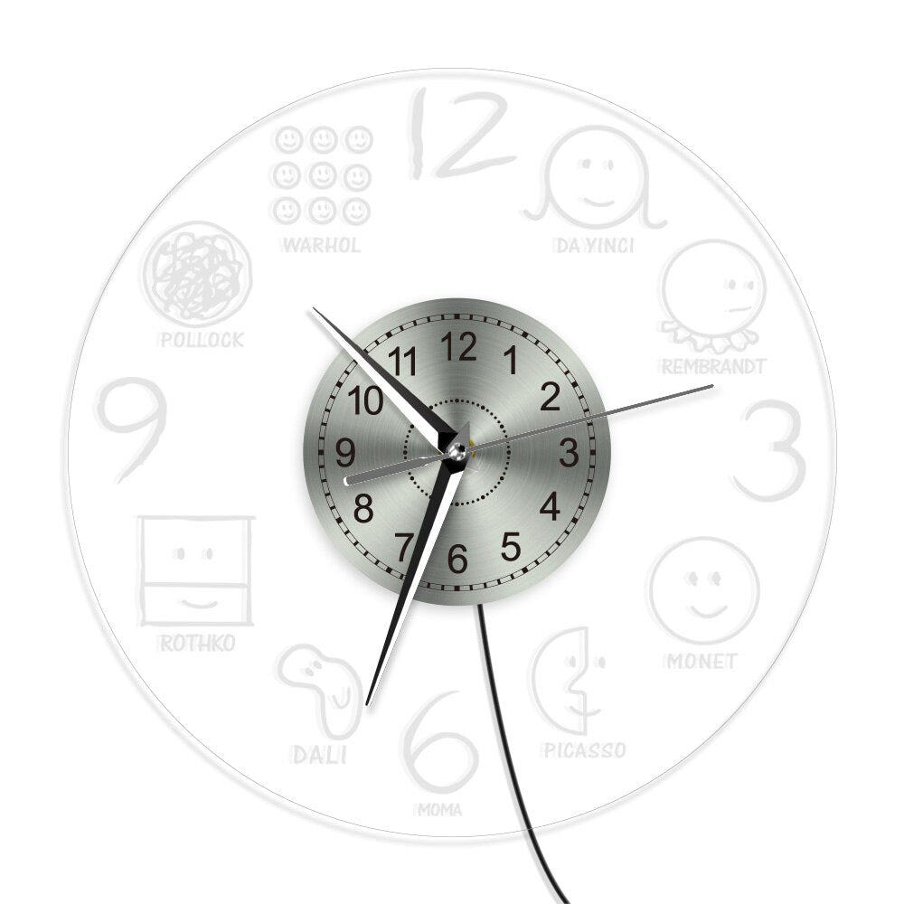 Ben je klaar om je interieur naar een hoger niveau te tillen met een vleugje artistieke flair? Deze unieke moderne kunst wandklok met led verlichting is meer dan zomaar een klok; het is een eerbetoon aan de grootste kunstenaars aller tijden, perfect gecombineerd met functionaliteit en een adembenemende lichtshow. Stel je voor hoe deze klok het middelpunt van je woonkamer, kantoor of studio wordt, en elke blik op de tijd verandert in een moment van inspiratie. Het is de ideale manier om je liefde voor kunst te uiten en tegelijkertijd een stijlvol en praktisch element aan je ruimte toe te voegen.
