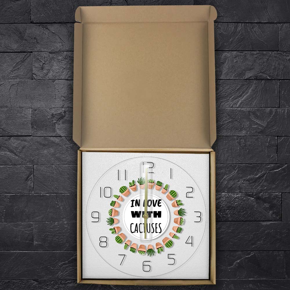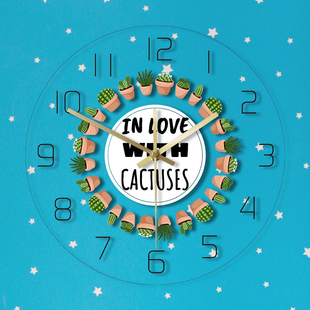 Maak van je huis een oase van gezelligheid met deze moderne wandklok met vrolijke cactussen.