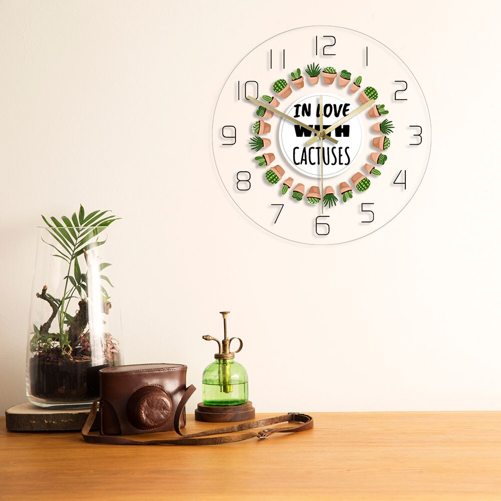 Ervaar elegantie en functionaliteit met onze Moderne wandklok met vrolijke cactussen. Ontworpen om je huis te verfraaien en de tijd in stijl bij te houden, combineert het verfijnd design met dagelijks gebruiksgemak.