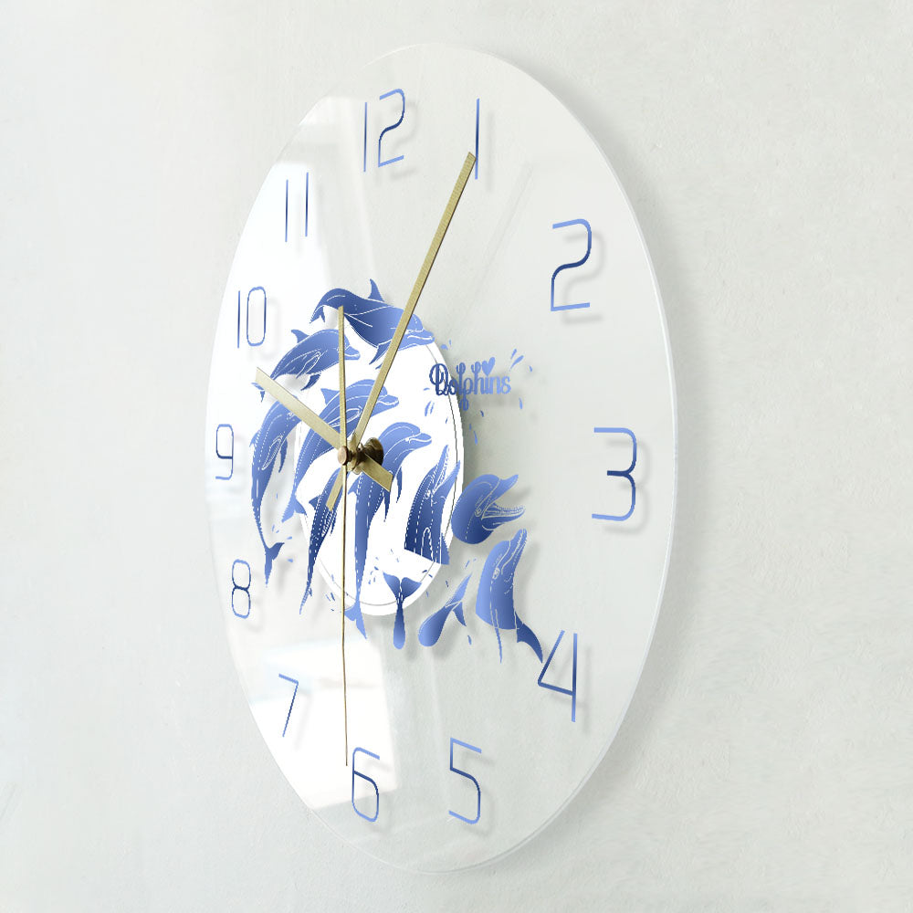 Ervaar elegantie en functionaliteit met onze Mooie wandklok met springende dolfijnen. Ontworpen om je huis te verfraaien en de tijd in stijl bij te houden, combineert het verfijnd design met dagelijks gebruiksgemak.