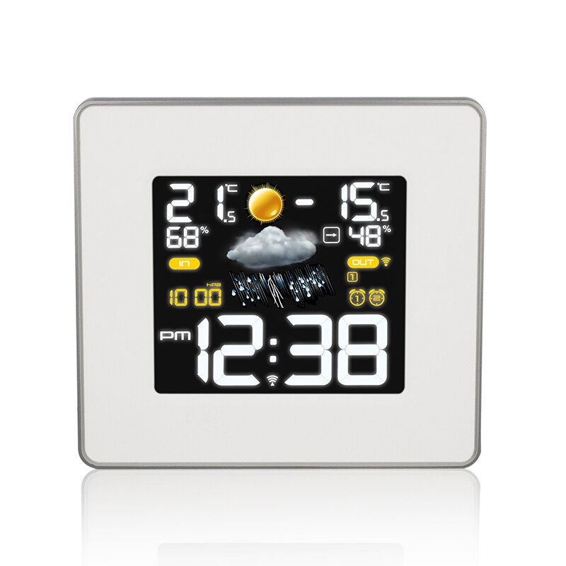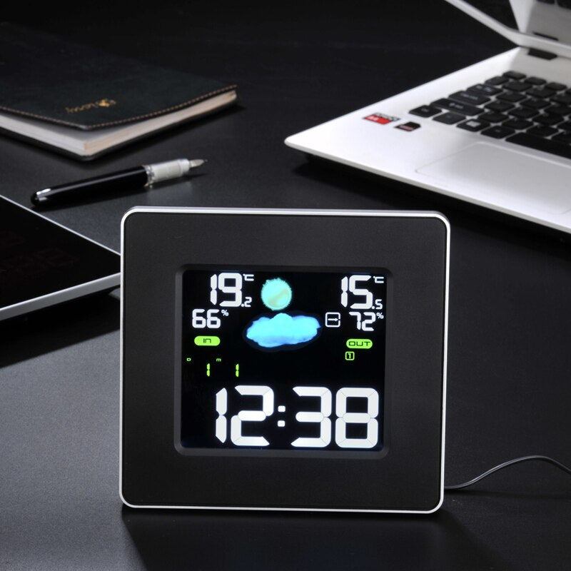 Onze Multifunctionele Vierkante Digitale Wekker zorgt ervoor dat je elke dag perfect geïnformeerd begint. Zie in één oogopslag de huidige tijd (met AM/PM indicatie), de binnentemperatuur en de luchtvochtigheid. Maar dat is nog niet alles! Deze slimme wekker geeft je ook een weersvoorspelling, zodat je altijd weet wat je kunt verwachten wanneer je de deur uitgaat. Met de duidelijke weergave van de buitentemperatuur en luchtvochtigheid ben je altijd voorbereid, of het nu zonnig, bewolkt of regenachtig is. De ingebouwde wekkerfuncties zorgen ervoor dat je nooit meer verslaapt.