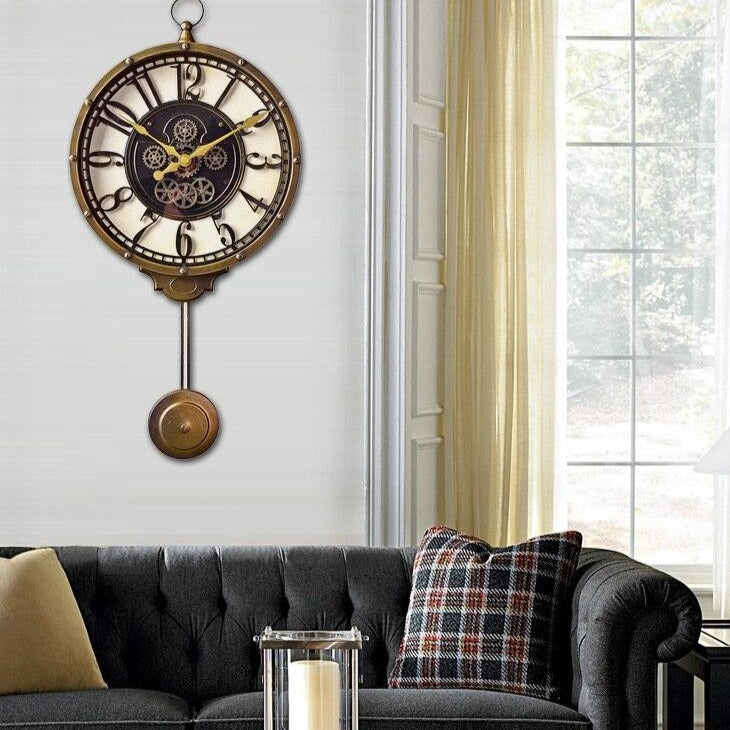 Maak van je huis een thuis met deze Retro Slingerklok met Bewegende Tandwielen.