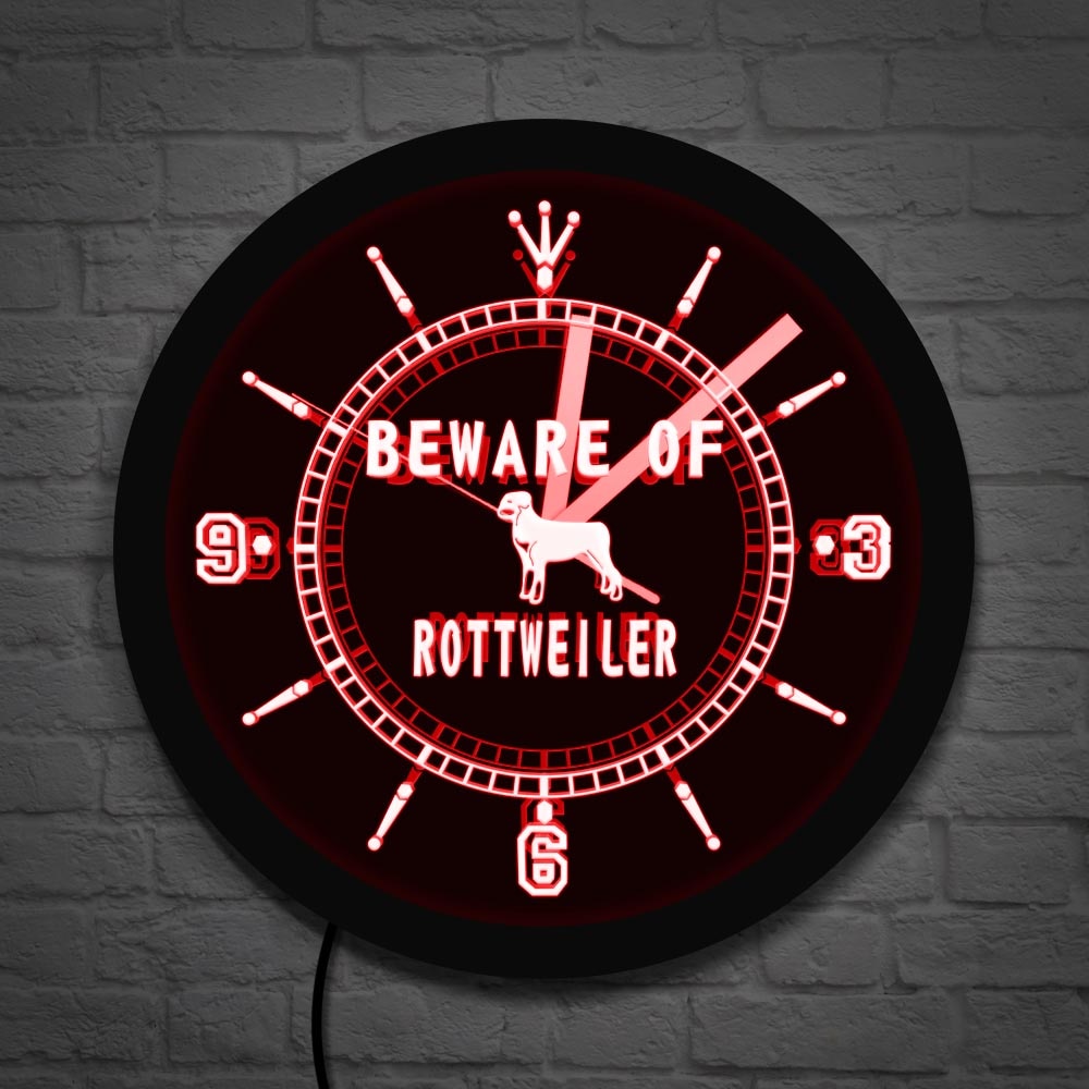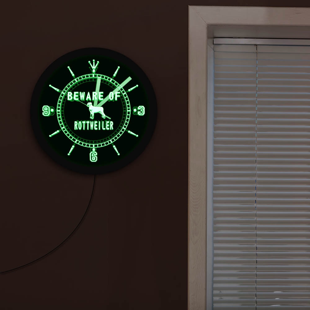 Maak je huis compleet met deze prachtige Rottweiler honden wandklok met LED licht.