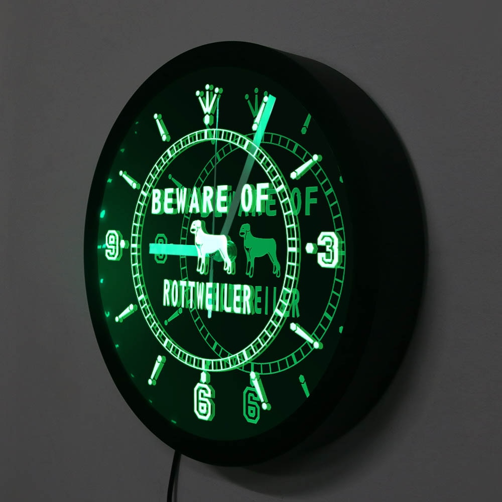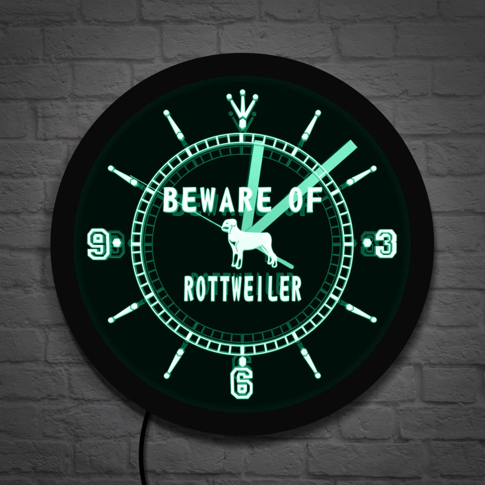 Kenmerken van onze Rottweiler honden wandklok met LED licht: