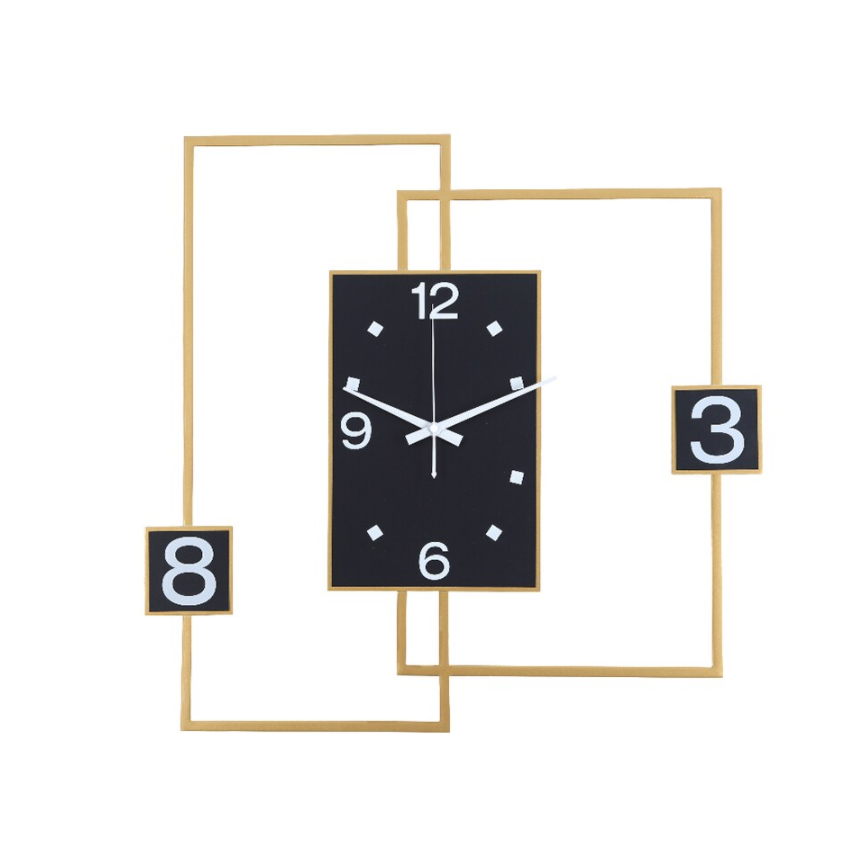 Verrijk je interieur met deze prachtige Scandinavische wandklok rechthoekig modern design. Stel je voor hoe deze klok, met zijn strakke lijnen en minimalistische uitstraling, de perfecte blikvanger wordt in je woonkamer, kantoor of slaapkamer. Het is meer dan alleen een klok; het is een statement van elegantie en functionaliteit. De combinatie van de zwarte wijzerplaat en de goudkleurige, geometrische omlijsting creëert een dynamisch en toch rustgevend geheel dat moeiteloos past in diverse moderne en Scandinavische inrichtingen. Geef je muur een artistieke touch en geniet van de subtiele luxe die deze klok uitstraalt.