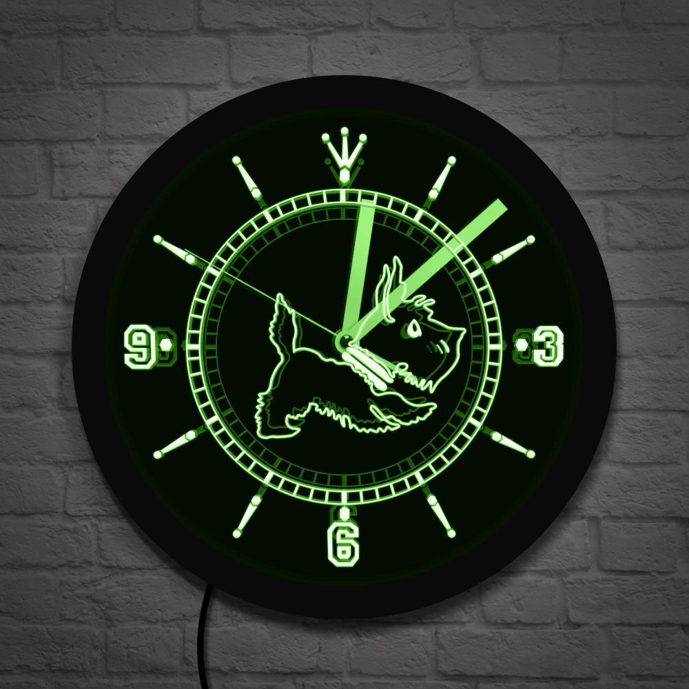 De charme en het nut van de Schotse terriër wandklok met led licht