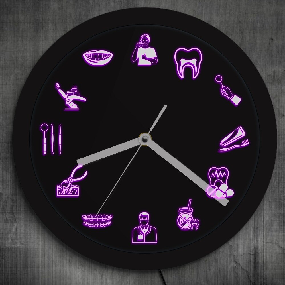 Ervaar elegantie en functionaliteit met onze Tandarts praktijk wandklok met led licht. Ontworpen om je huis te verfraaien en de tijd in stijl bij te houden, combineert het verfijnd design met dagelijks gebruiksgemak.