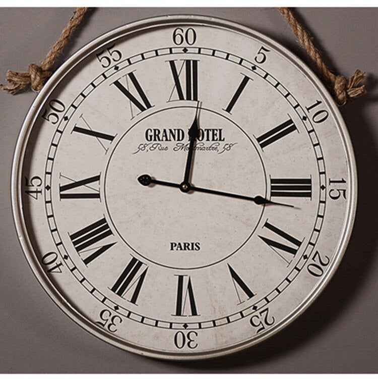 Ervaar elegantie en functionaliteit met onze Vintage hangende klok met touw. Ontworpen om je huis te verfraaien en de tijd in stijl bij te houden, combineert het verfijnd design met dagelijks gebruiksgemak.