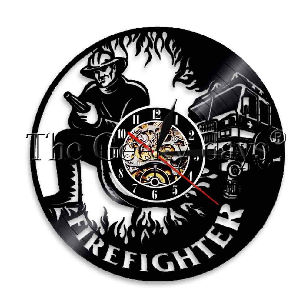 Geef een cadeau dat indruk maakt: de Vinylplaat wandklok met brandweerman thema.