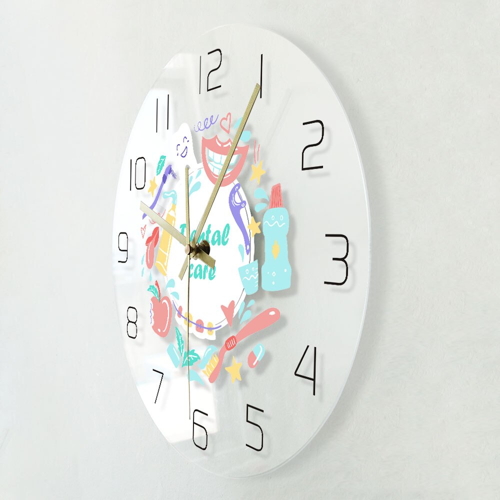 Deze klok is speciaal ontworpen met de tandheelkundige wereld in gedachten, maar met een twist! Weg met de saaie, steriele omgeving; hallo vrolijkheid en kleur! De levendige pastelkleuren en de schattige illustraties maken het een ideale aanvulling op elke ruimte die een beetje extra pit en persoonlijkheid kan gebruiken. Het is niet alleen een praktisch hulpmiddel om de tijd bij te houden, maar ook een kunstwerk dat de boodschap van mondgezondheid op een leuke en toegankelijke manier overbrengt. Denk aan de reacties van je patiënten: "Wat een leuke klok!" Dat is precies het effect dat je wilt, toch? Een positieve associatie met een bezoek aan de tandarts.