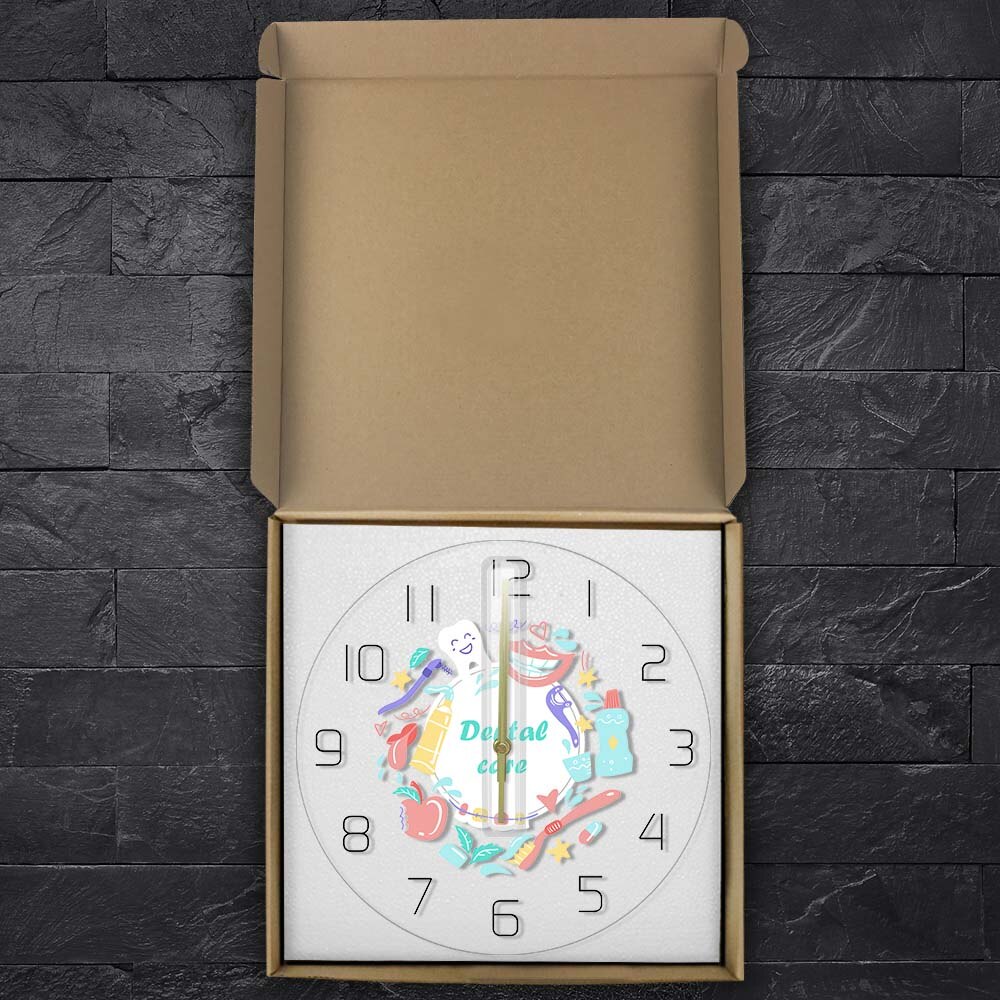 Verlicht je praktijk met deze superleuke Vrolijke wandklok voor de tandarts! Deze klok is niet zomaar een klok; het is een echte blikvanger die een glimlach tovert op het gezicht van zowel patiënten als personeel. Met zijn speelse illustraties van tandenborstels, tandpasta, vrolijke monden en gezonde appels, straalt deze klok een positieve en kindvriendelijke sfeer uit. Stel je voor hoe kleine patiëntjes minder angstig zullen zijn, afgeleid door de vrolijke beelden, terwijl ze wachten op hun beurt. Het is de perfecte manier om een ontspannen en gastvrije omgeving te creëren in elke tandartspraktijk, orthodontiepraktijk of zelfs in de wachtkamer van een kindertandarts.