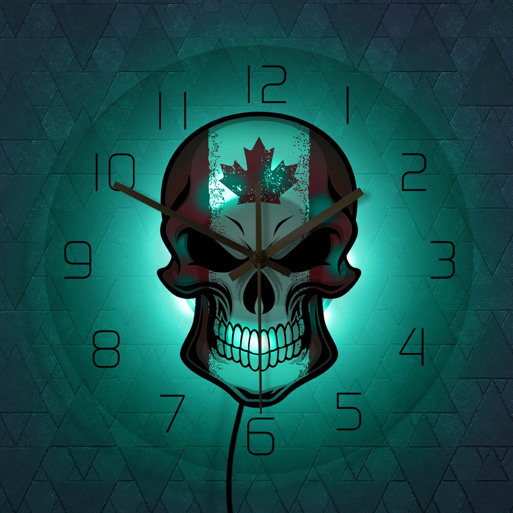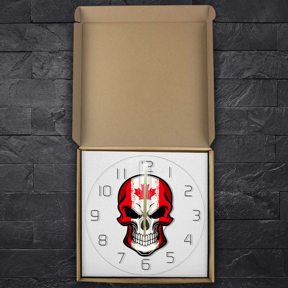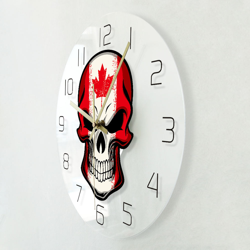 Maak Vandaag Nog Een Statement Met Deze Wandklok Doodshoofd met Canadese Vlag!