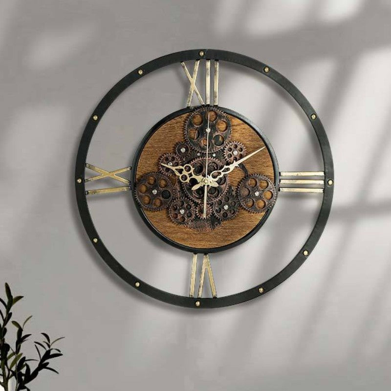 Maak een statement met deze wandklok met draaiende tandwielen industrieel in jouw interieur.