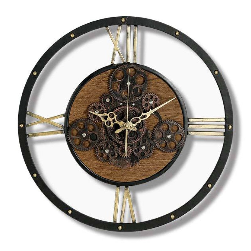 Ontdek onze unieke wandklok met draaiende tandwielen industrieel