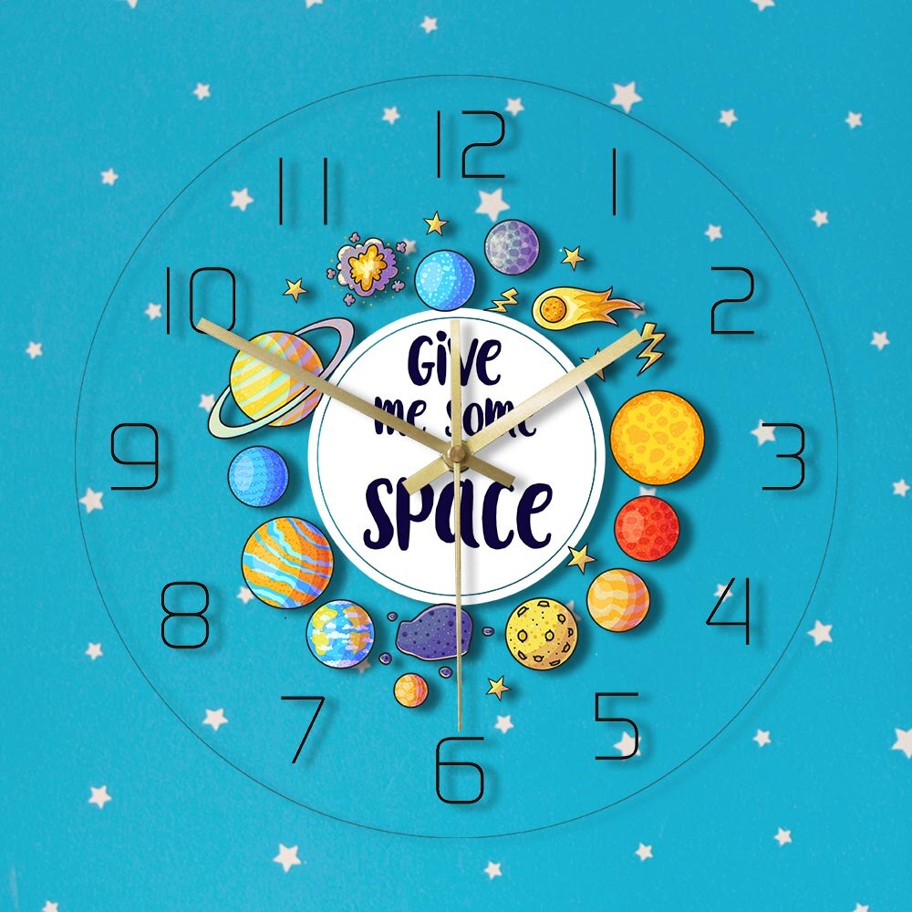 Ervaar elegantie en functionaliteit met onze Wandklok met planeten voor kinderkamer. Ontworpen om je huis te verfraaien en de tijd in stijl bij te houden, combineert het verfijnd design met dagelijks gebruiksgemak.
