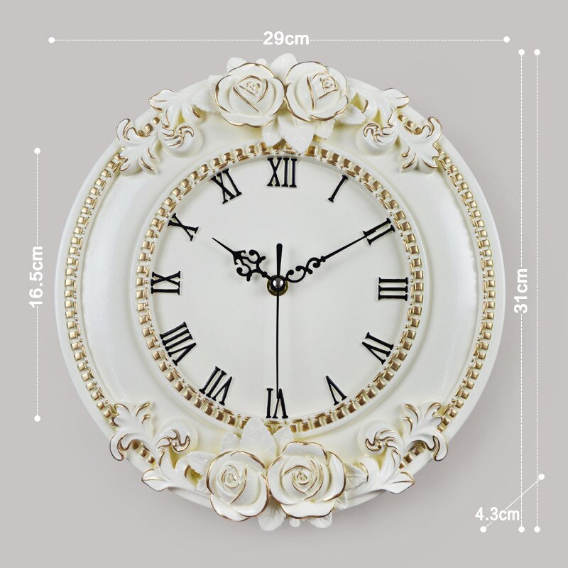Deze wandklok is niet zomaar een klok. Het is een zorgvuldig ontworpen stuk dat esthetiek en functionaliteit combineert. De handgemaakte rozen, subtiel verwerkt in het kader, geven een ambachtelijke en luxueuze uitstraling. De Romeinse cijfers dragen bij aan de klassieke elegantie, waardoor de klok moeiteloos past in zowel moderne als traditionele interieurs. Het duurzame materiaal zorgt ervoor dat je jarenlang plezier zult hebben van deze prachtige toevoeging aan je huis. Denk aan de rustgevende aanblik en de betrouwbaarheid van een uurwerk dat met liefde is gemaakt.